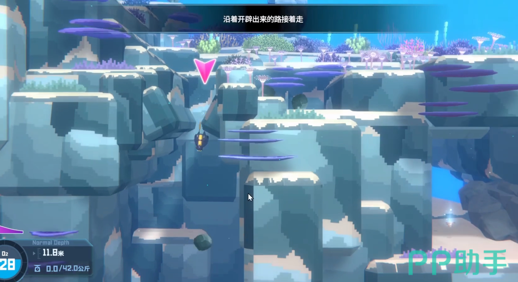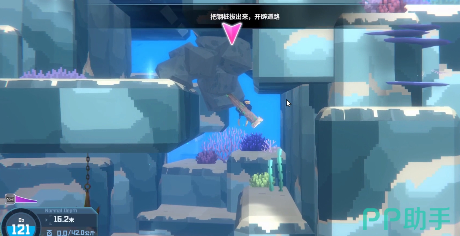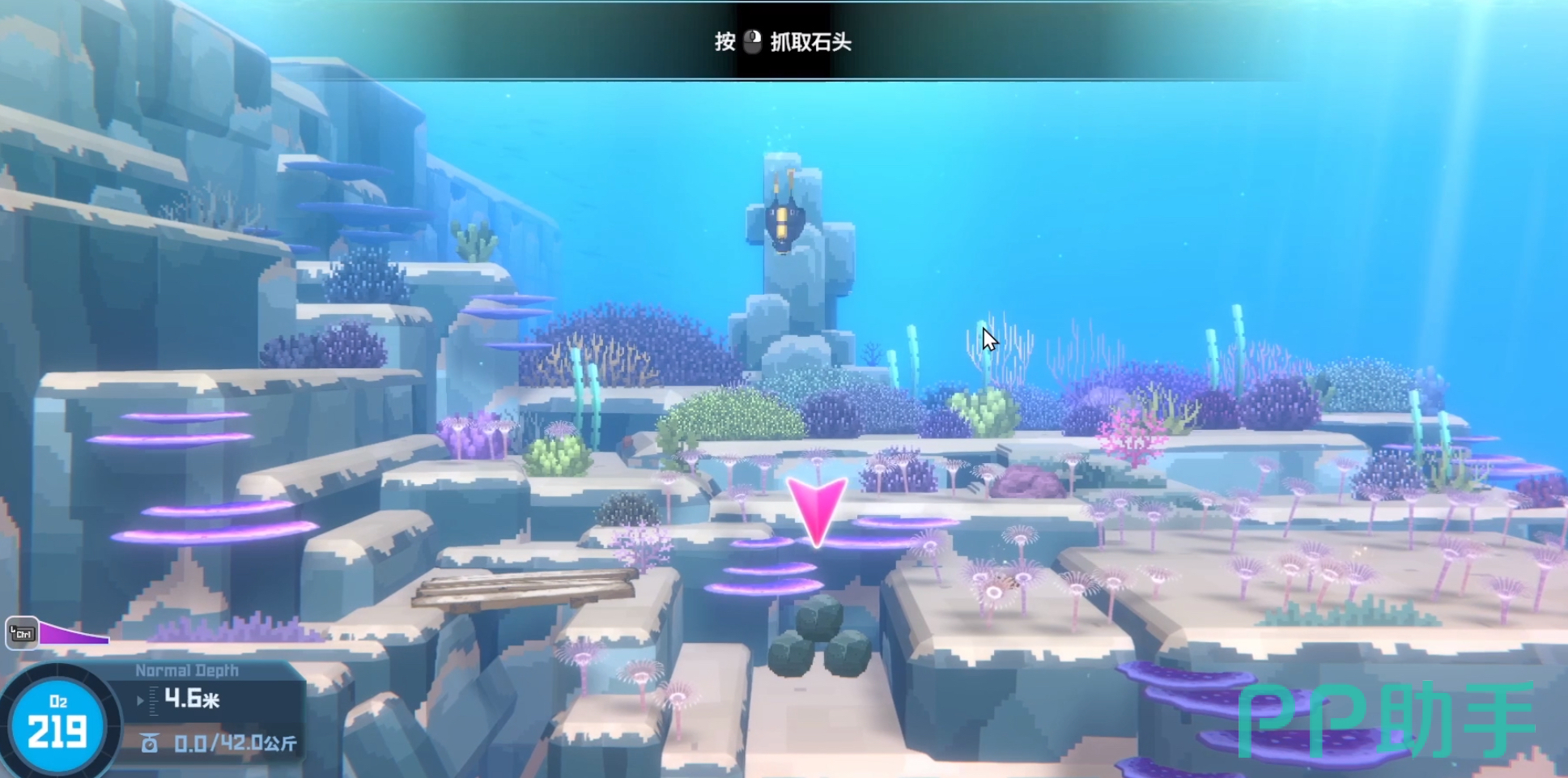 在第二章向更深处这个剧情任务中,培根博士会送给我们一双特制手套,然后我们需要戴上这双手套进行潜水。潜到水下之后需要用这双手套搬起石头砸坏木板,之后继续跟着任务提示,将插在石壁上的钢管给它拔出来,之后就继续按照任务提示做就可以了。