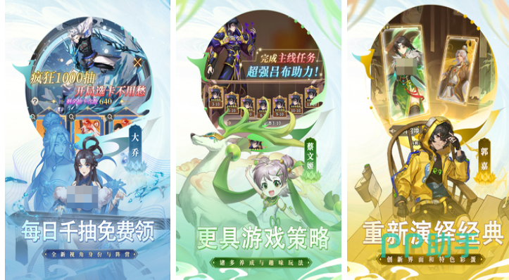 本作也是款加入了三国主题的抽卡策略类型国产神作,新手玩家每天都可以领取一千连抽的免费福利轻松获取道具,注重策略性的集卡式战斗PK玩法让卡牌游戏迷乐在其中,重新演绎的经典三国剧情塑造更显特殊颠覆了大家的认知,二次元生动的三国角色造型无疑让整体观赏性水涨船高,喜欢那种颜值高三国卡牌手游的朋友来试试本作吧。