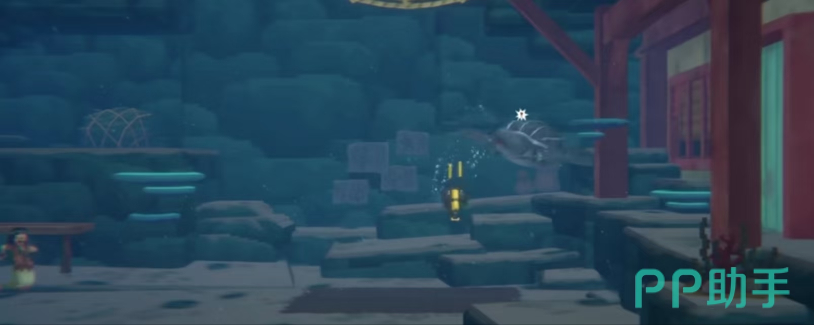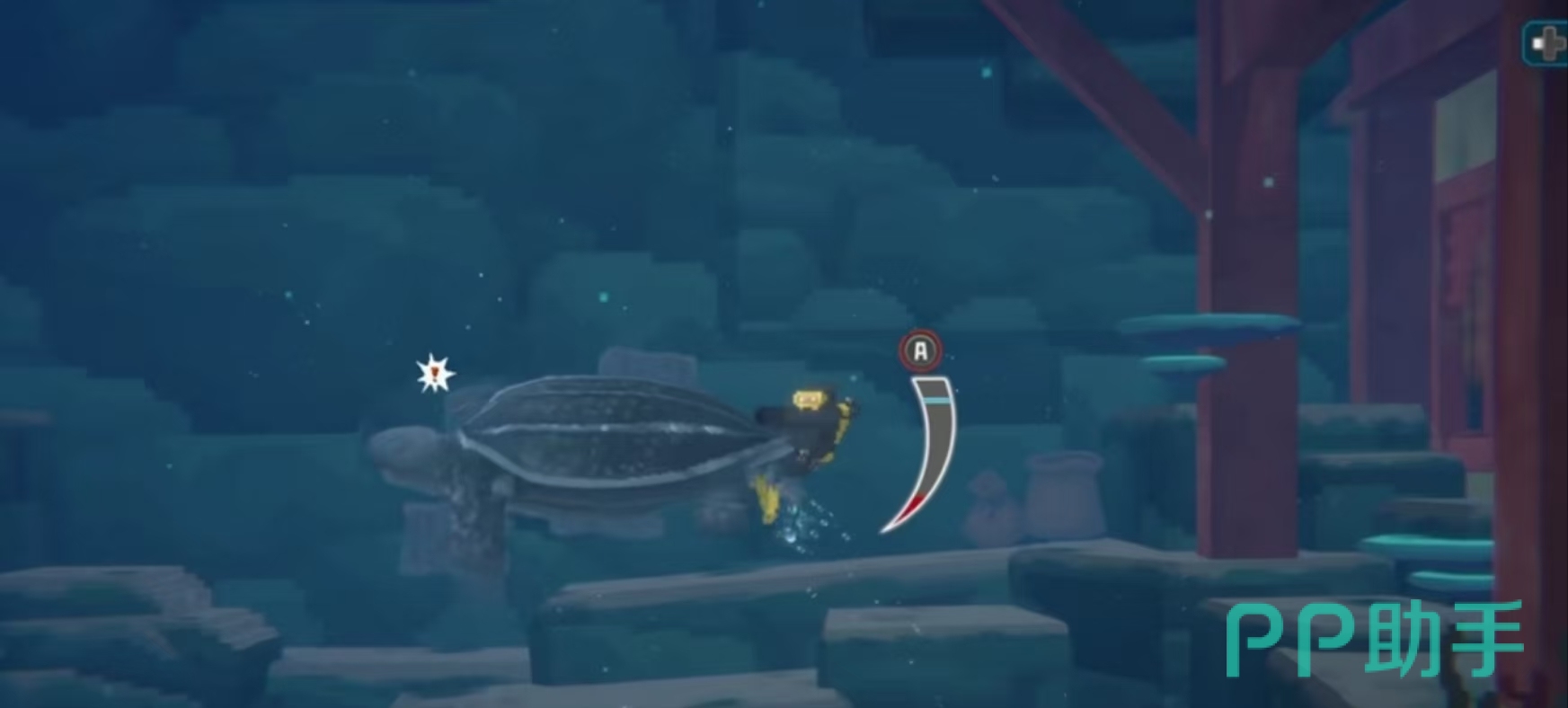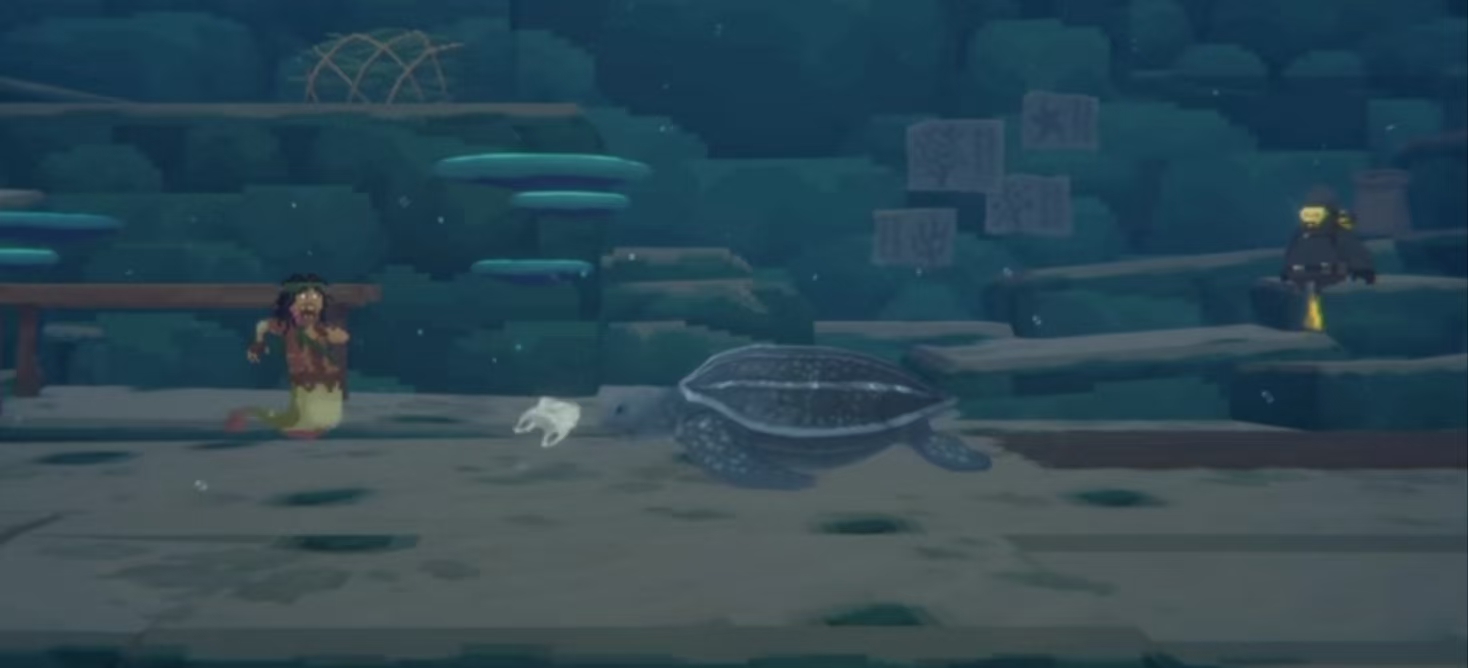 在这款游戏当中玩家可以体验到与乌龟多纳互动的任务,这个时候玩家就需要前往冰河区域与鲛人进行对话,之后就会得知乌龟多纳会因为误食而变得发狂,所以这个时候玩家需要安抚他的情绪。也可以通过抓住它的龟壳并点击空格键,就可以让它冷静下来,在这个操作的过程中,玩家只需要注意自己的氧气含量,避免以缺氧而阵亡。那么当乌龟完全冷静下来之后,玩家就可以从他的口中找到他务实的塑料袋,并前往指定的地点完成任务的交接。