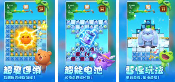 玩家每动一个小指头都有机会迎来amazing和excellent,消消乐也成了不少玩家的怀旧。在消除的同时,玩家可以体验收集金豆荚以及更多小海豚等动物的快乐。随着元素的增加,超能电池的作用会带来不少的帮助。在隐藏关卡中,玩家将在更少的限制步数中,将带有三层冰覆盖的冰块消除,更具有挑战性哦。