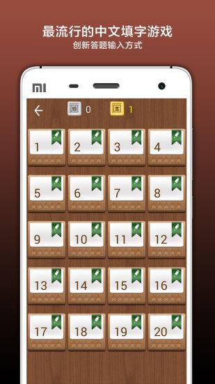 如果感觉自己的语文能力比较强的话,就来玩这款很棒的中文填字游戏吧。在游戏中玩家可以去扩展自己的知识面,游戏的画面非常的简洁,大家需要将文字填写在空白的区域内,让它在横着或者是竖着的时候都可以成为一条线。而且每一次输入答案之后,大家就可以提交,然后判断这一个成语是否正确。