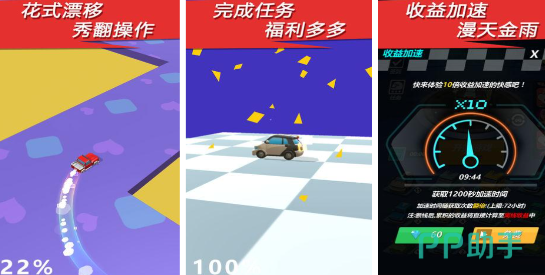 这款手游采用的精彩的3d建模让玩家们体会最纯粹的漂移,游戏还贴心的为玩家们准备了提示,大家点击提示就可以完成漂移或者一些其他高难度汽车动作。游戏里的操作方式主要有长按和轻触,两种方式配合才能让大家驾驶出最完美的漂移。并且游戏采用竖版的竞速模式,让玩家更直观的观察赛道。