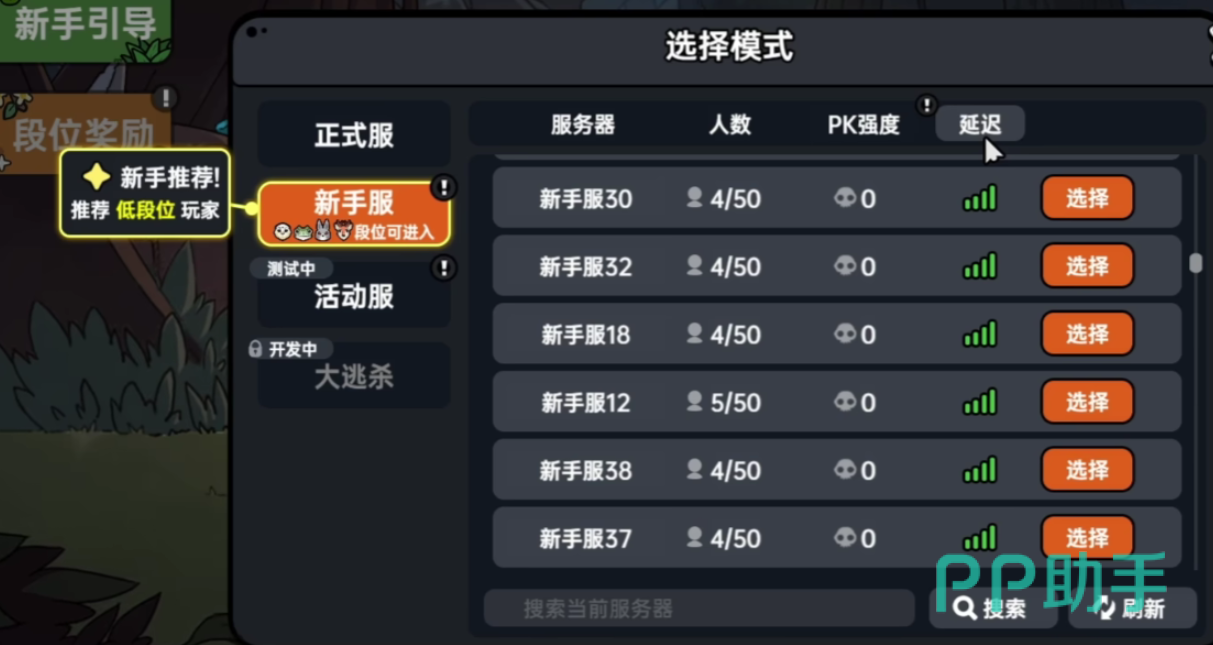 要体验一下的社交玩法,需要玩家至少达到10级,这时候大家就可以在游戏的服务器选择区块里,选择新手区或者活动区。可以看到有很多个新手服,每个服可以容纳一定的人数上限。