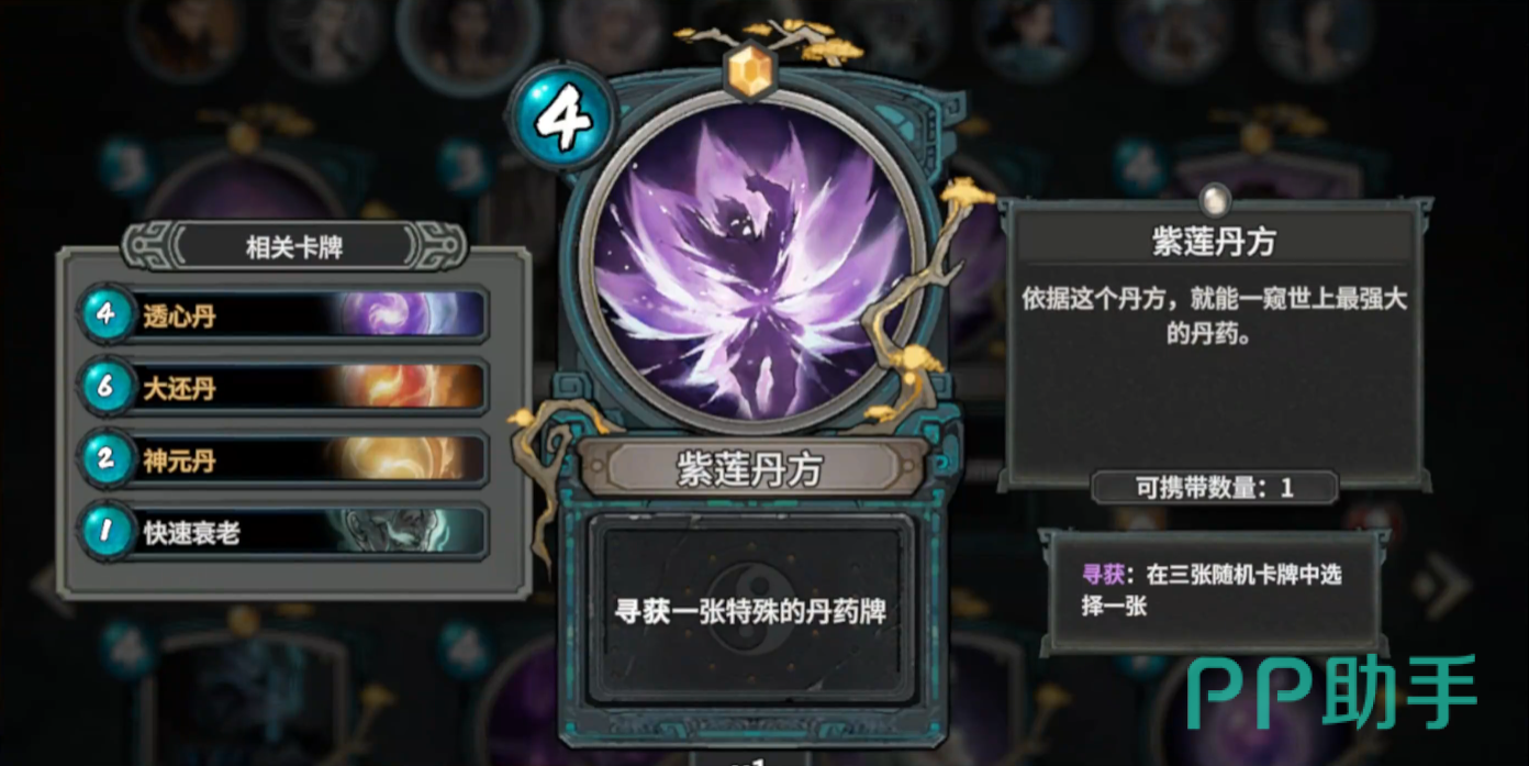 第二张比较推荐的卡牌“紫莲单方”,该卡牌之所以推荐,是因为它的上限被祖师卡拉高了一个层次,不管是配合神元丹,还是配合透心丹来洗疲劳,甚至可以配合大还丹来两次回满血量,这无疑都是非常强大的存在。
