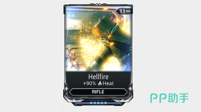 地狱火,是一个可以增强步枪类武器火焰伤害的模组,每一级加15%,最高5级的时候可以提供90%的增益。需要注意的是,增加的元素伤害是在武器基础伤害上计算的,而且不论武器有没有该元素都可增加对应元素伤害。