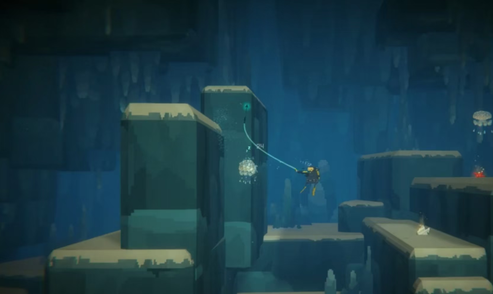 这场财富盛宴中,掌握高效捕捞技巧至关重要。携带睡眠枪下水,直奔蓝洞深处,不为沿途风景所动,明确目标生物。借助未完成的鲛人任务,锁定深层地图,避免无谓绕路。到达管虫位置,利用固定刷新点的弹药箱,在转弯处精准使用睡眠枪抓捕3个目标生物,巧妙引炸自重水母。