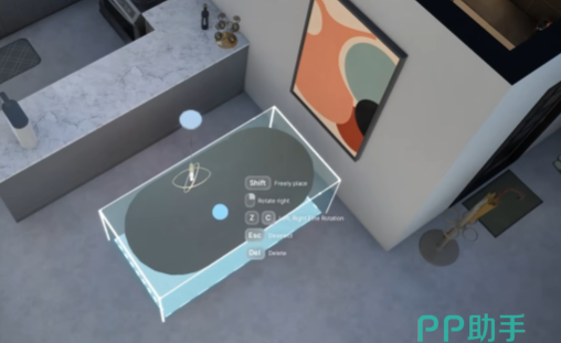 注意预留的空地要足够,不然会卡模型的,画面显示都是白色小点,就建造完成了。然后我们可以进入房间里面,点击想要更改的设施,就会进行挑选环节,更换组件之后,我们调整下摆放位置,就可以得到新的布置了。