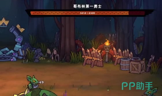 哥布林第一勇士是游戏中一位身形非常巨大的boss,拥有很多不一样的技能,例如第1个技能在蓄力之后就会直接从空中砸下来,地面上马上就会出现一个圆形的技能。这一个技能还是比较好躲的,只需要躲到背后去攻击即可。