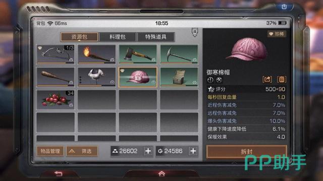 棉帽:其实叫御寒棉帽,一秒回血值1.0,保暖效果4.0