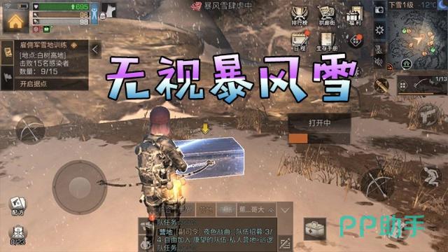 如果你想快人一步开到箱子,可以考虑以下方法:白树高地有一种特殊的恶劣天气—暴风雪,这种气温会给角色带来不同程度的冻伤,冻伤后游戏玩家就会连续不断掉血,所以每当暴风雪暴虐的时候,很多玩家都会躲进安全屋中,或者是乘坐直升飞机回营地,只有少数玩家在户外点篝火取暖。