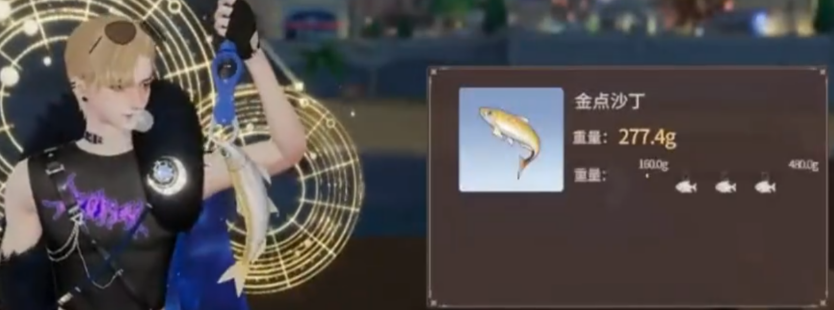 完成准备后,钓鱼的第一步就开始了。你只需要找一个靠近的海域,就可以开始钓鱼了。这里是初阶任务,难度不大。你只要等待画面提示,看到鱼上钩的时候,及时点击钓上来。每次钓到鱼后,系统会显示鱼的种类和重量,继续钓,直到满足任务要求——钓到三条鱼。这时,你只需返回去找“欧汛”交任务,就能领取奖励啦。