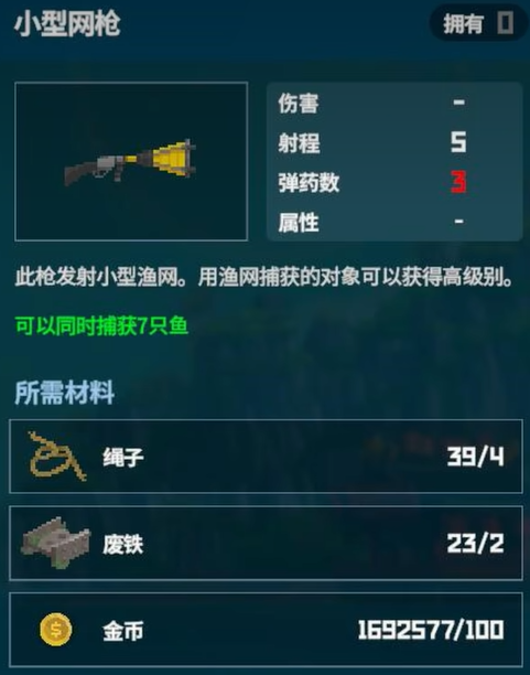 装备对新手玩家来说至关重要。你可以在潜水时捡到很多有用的道具,比如黄箱、武器箱、氧气罐等,捡到后要赶紧带回去。不过,记得装备一旦出水就会消失,所以一定要快速利用这些道具。对于新手来说,催眠弹力锤是非常实用的武器,它可以帮助你轻松捕获三星鱼。而在中期,渔网则是必备工具,它能够帮助你提高捕鱼效率,捕捉更多高星级的鱼类。