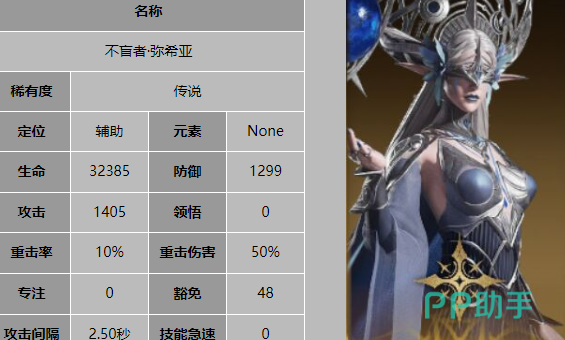不盲者弥希亚以其强大的治疗能力被誉为游戏中最强的奶妈英雄。她的一技能生命光环可以直接提升队友30%的生命值,无需任何前置条件;星月垂怜则能在队友受到致命伤害时施加不死状态并恢复血量,远程队友还能获得隐身效果;长生之辉是范围性的 治疗技能,能为全体队友恢复血量;全知者祝佑更是拥有复活效果,能复活所有己方单位并恢复75%的生命值。这些技能使得弥希亚在团队中扮演着不可或缺的角色,无论是推图还是竞技场,她都是保障队伍生存能力的关键,但是这个技能的耗蓝比较多,前期如果获得还是推荐优先培养的。