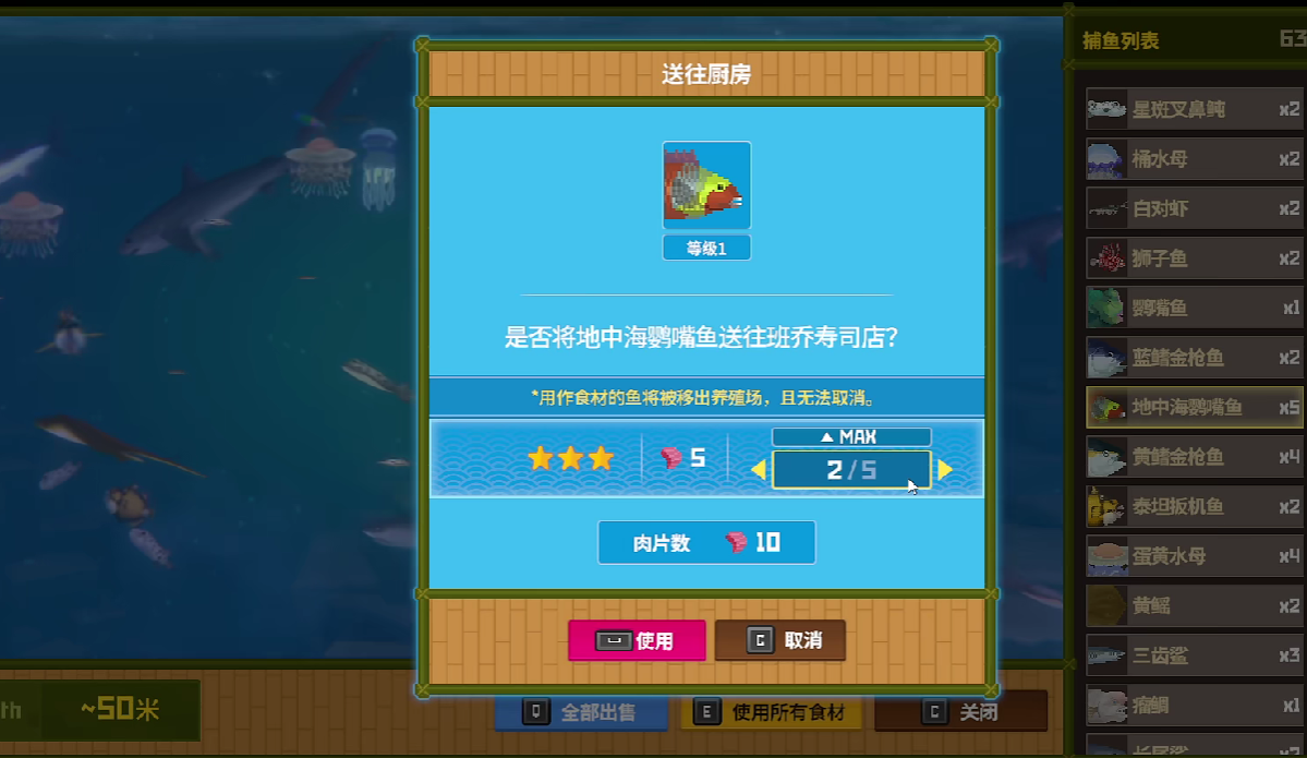第二个作用是在游戏内直接用于制作寿司,寿司可以直接在晚上寿司店的玩法之中卖出,获取金币。