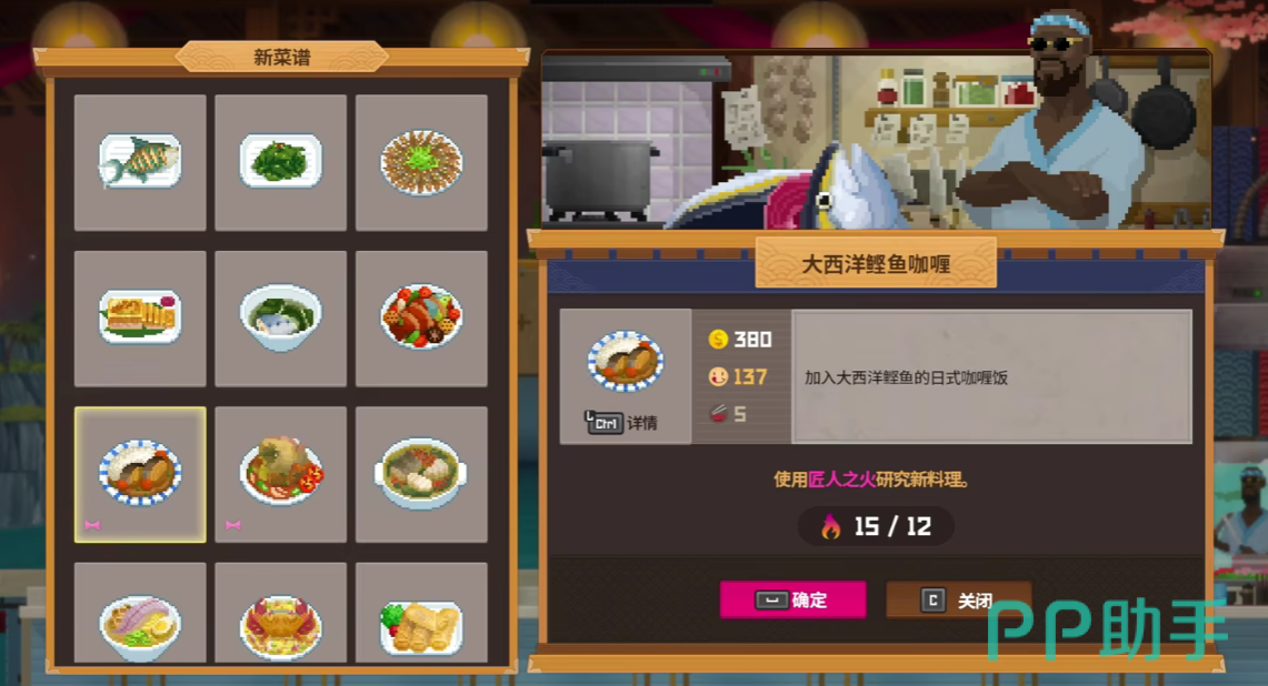 如果玩家想要降低难度,也可以直接烹饪大西洋煎鱼咖喱,大西洋煎鱼咖喱是将煎鱼和咖喱进行融合的菜系,玩家的基础烹饪等级必须达到15级以上,并且要使用匠人之火来研究这个菜谱,匠人之火的获取难度是该毕业菜的唯一难点,玩家必须前往鲛人村之中,习得鲛人的技能,再将匠人技能提升到最高时,就能够获得匠人之火了,但是这一个菜系需要制作两份,才能够满足毕业菜的要求。