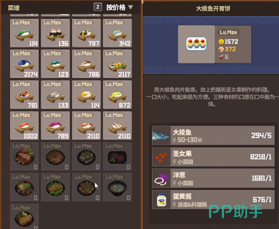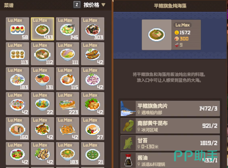 节日限定菜品则为玩家带来了更多的趣味与挑战,条纹四鳍旗鱼派对是以酱烤条纹四鳍旗鱼为核心,辅以蒜泥与秘制大酱,香气扑鼻且味道浓郁,一次可制作9碗,特别适合满足大胃王顾客的需求。而龙虾派对将美洲龙虾与锦绣龙虾的鲜美融为一体,加入抓都昆虫的特殊风味,带来前所未有的豪华口感,尽管每次制作仅出品5碗,但其奢华程度足以吸引高端顾客前来消费。