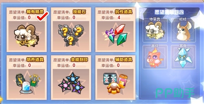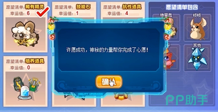 每次许愿的结果并非完全随机,而是有一定的概率机制在其中,如果大家在一次许愿中没有抽到心仪的物品,也不用担心,因为每失败一次系统都会为大家增加幸运值,它会随着许愿失败的次数逐渐累积,而幸运值越高,下次许愿时获得物品的概率也就越大,也就是说随着大家参与活动的次数增多,获得珍贵物品的机会也会相应增加。