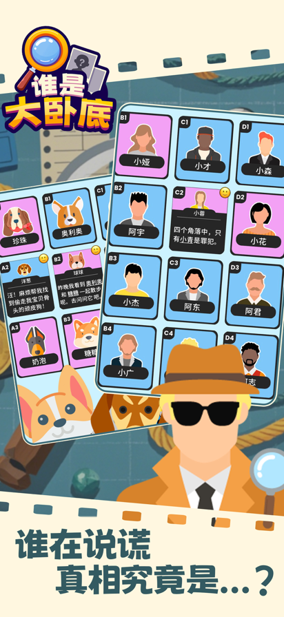 游戏对新手玩家也非常友好,简单直观的操作方式与逐步递进的关卡难度,使得无论是推理老手还是初学者,都能迅速上手并沉浸其中,随着关卡的推进,谜题难度逐渐升级,玩家需要更加专注于细节,才能破解那些看似无解的谜题。特别是在多人模式中,玩家之间的互动与对抗更是将游戏的紧张感推向了高潮。每一次找到关键线索、成功揭露卧底的瞬间,都会带来满满的成就感。