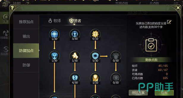 在防御加点这一方面,主要注重的就是选择,连锁闪电点 13 点,盾挡 7 级,治愈 6 级,一般浮空和侧滑全部都需要点满。另外在加点时可以选择挑衅三级,破甲4级,防御之盾六级。