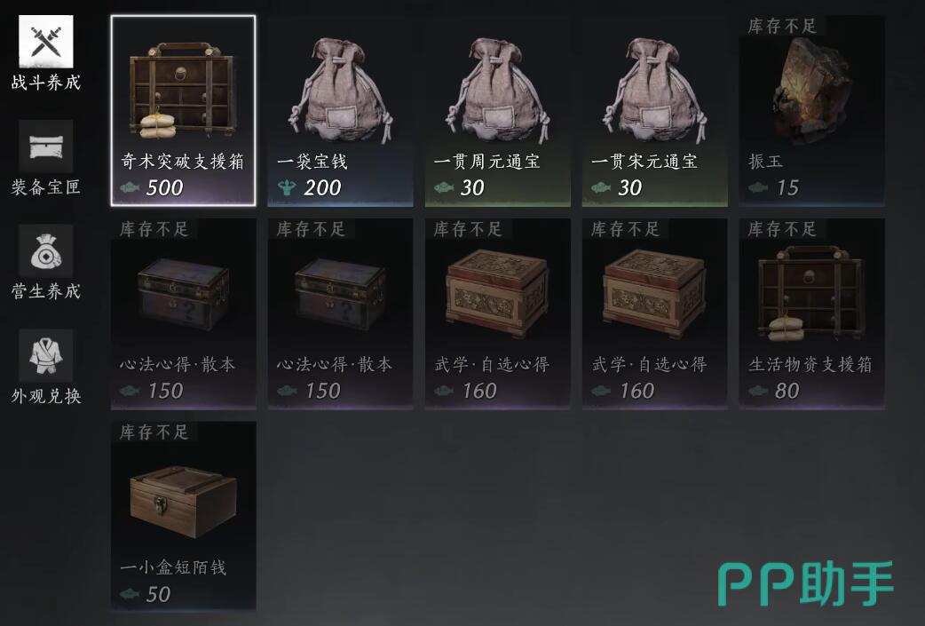 剩下的三种货币就是铜钱短陌钱和宝钱了。宝钱在某种意义上是长鸣玉的下位替代,因为它的主要用途就是购买皮肤,玩家可以用出售食物药品道具的方式来赚取宝钱。而铜钱,则主要是用来购买基础材料的,比如做食物用到的肉块等素材,都需要铜钱来购买。而短陌钱,则是通过市买司跑商玩法进行获取。
