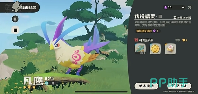 凡鹰只在限时活动期间出现,玩家需要在活动界面找到其刷新位置,捕获凡鹰的过程相对复杂,需要玩家将凡鹰的血量压低到一个适宜的范围,但不能直接击败它。玩家可以选择匹配组队,与其他玩家一起挑战凡鹰,成功捕获后,凡鹰的等级会根据挑战的难度不同而有所不同。二星挑战获得40级的凡鹰,三星挑战获得50级的凡鹰。