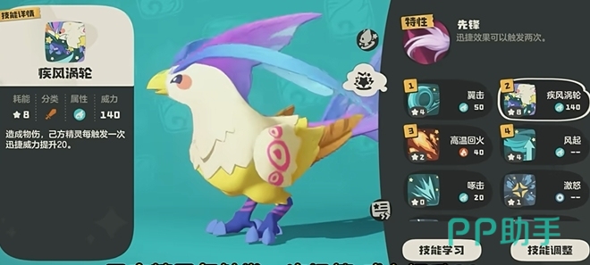 疾风涡轮造成物理伤害,每次迅捷效果触发时威力提升20%,不仅攻击力高,更能在多次触发迅捷效果时表现出色,使凡鹰在战场上迅如疾风,令人难以招架。