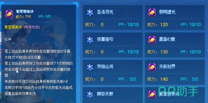 尽管尤莉米特的克制倍数介于0.5,1.5之间,并未达到极致,但她凭借这一技能与战术运用,依然能够在平地战斗中对敌方满体精灵构成威胁,尤莉米特的第五技能千华觅月歌,以其独特的命中机制与效果划分,这个技能根据使用结果是否命中来触发不同的效果,而其内置的0%命中率设定,使得在缺乏必中buff的情况下,往往只能打出miss。
