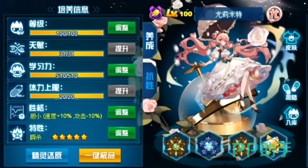 此外缭乱作为先手技能,也是尤莉米特必备的技能之一,它具备先制吸强封攻击的能力,并辅以魂印效果,使得对方在使用属性技能命中时能够恢复生命值,繁星赞美诗则是尤莉米特的主要输出技能,它不仅具备高伤害还是必中的,这个技能需要注意的是未击败下回合先制+2的效果,搭配强化技能使用时,能够叠出一回合先4的高额伤害,这种设计让尤莉米特在面对敌方先手控制时,能够迅速反击并重创对手。