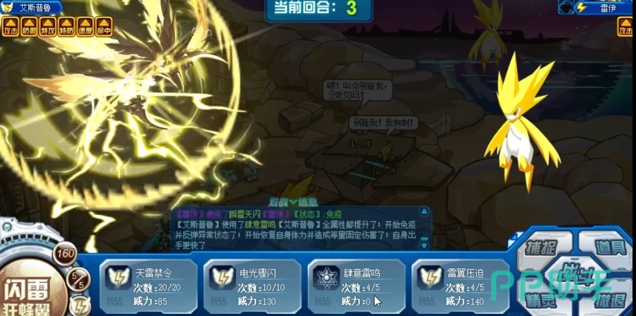 电光骤闪技能在属性相同时,技能威力提升100%,电魂消亡技能具有先制+1的效果,是必中的,这个技能会使对手全属性-1,并且当自身体力低于对手时,弱化效果会翻倍,此外该技能还会消耗自身全部体力,使对手受到等同于自身最大体力1/1的固定伤害,并且在3回合内对手无法通过技能恢复自身体力。