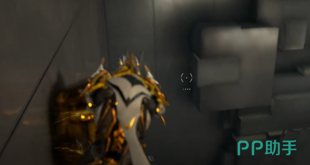 靠近墙面的时候调整视角就可以做好攀墙的准备,当玩家面对墙面时,按住跳跃键(电脑端是Space键),战甲会进入一种“壁挂”状态,会附着在墙上。在该状态下,可以使用瞄准键(鼠标右键)来维持一段时间,同时调整视角选择跳跃方向。