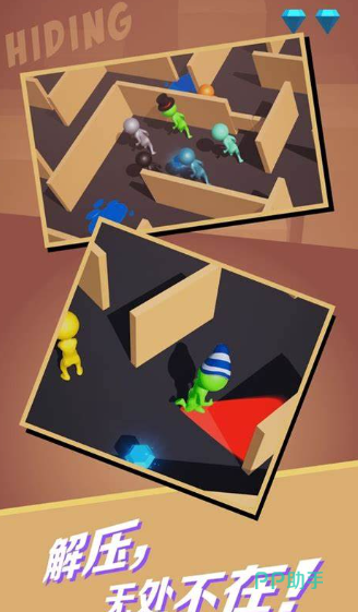 玩家可以选择成为隐秘的“潜行者”或是敏锐的“追踪者”,游戏设有多个精心设计的关卡,每个关卡都是一个全新的迷宫世界,充满了未知和挑战。玩家不仅需要巧妙地隐藏自己或机智地寻找对手,还可以在探索过程中收集珍贵的宝石。这些宝石可以用来解锁各种独特的服饰和道具,增加游戏的趣味性和个性化。