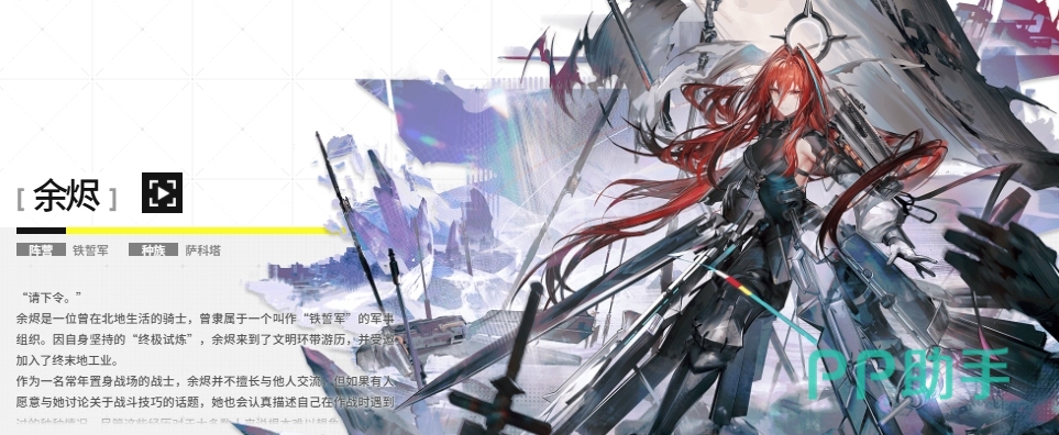 综上就是全部有关明日方舟终末地萨科塔角色的相关介绍,目前的这个种族只有一个角色,不过随着游戏的发展,后续会出现越来越多的同种族角色,小伙伴们有需要的话,到时候收集就可以了,后期需要的干员会越来越多。