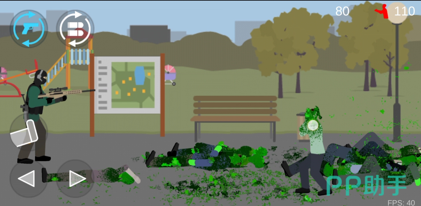 这是一款风格鲜明的横版动作射击游戏,以僵尸为主题展开。玩进入游戏后,会身处危机四伏的横版场景,无数僵尸蜂拥而至。它运用传统虚拟引擎来控制角色,玩家可以很方便地操控角色移动、射击。游戏里的装备琳琅满目,我们能依照自己的想法随意组合。在激烈的战斗过程中,依靠出色的操作技巧与适配的武器,从僵尸的层层围困中突出重围,尽情享受紧张刺激的射击乐趣。