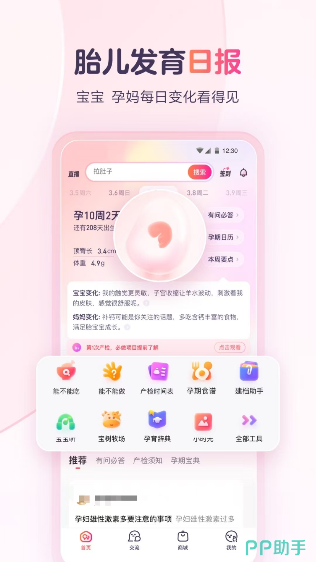 这一款软件拥有了不同的模式,包括了经期和备孕以及育儿,而且可以根据自己的实际情况去推算出具体的怀孕周期,并推算出预产期。每天都会利用具体的科普方式,让孕妇详细的了解宝宝的变化以及妈妈的变化。而且另外还有各种知识以及胎儿的评估等各种丰富的内容。