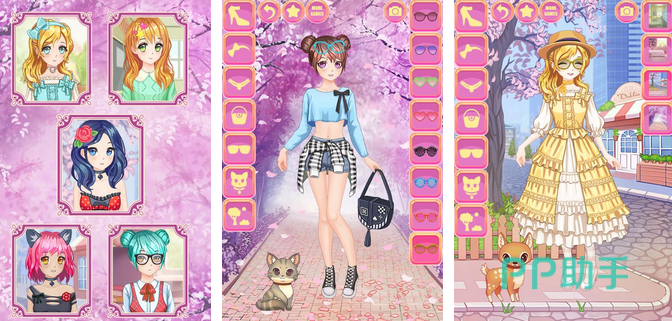想成为一名美妆时尚达人吗?在进入装扮前,玩家可选择角色的发型以及各式各样的颜色。在比较齐全的服装板块,水手服以及各种漂亮的蛋糕裙让玩家眼前一亮。点击眼镜板块,玩家可挑选各种各样的墨镜,玩家还可以选择不同类型的包包。在装扮过后,玩家外出前还可以带上小猫等宠物,小猫也可以进行服装上的装扮哦。