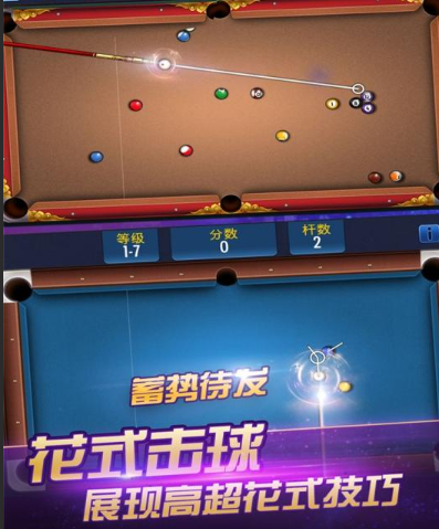 玩家可以通过完成特定任务或赢得比赛来解锁独特的球杆和台球桌设计,这些设计不仅美观,还能提升游戏体验。每种击球方式都有其独特的物理效果和音效,让玩家仿佛置身于真实的台球室中。此外,游戏还引入了创新的“时间挑战”和“技巧大师”模式,玩家需要在限定时间内完成特定击球任务,或在技巧大师模式中展示高超的台球技巧,以赢得额外的奖励和荣誉。