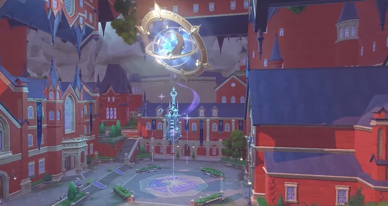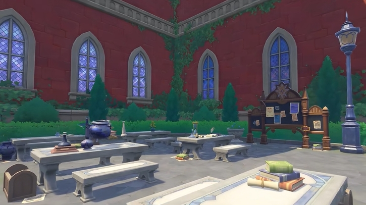 法学院的建筑风格独特,融入了古典与奇幻的元素,红墙搭配蓝色房顶,色彩艳丽,引人注意。学院内部的点缀也很精致,日月时钟、徽章、日晷、战旗等经典装点,营造出浓厚的魔法气氛。先知Lulu的雕像矗立在学院广场的中间,塑像下的魔法光辉代表了理想的灵感,是所有玩家务必打卡的胜地。此外,法术学院还设有各种教室和调研室,供玩家学习与实践各种魔法技能。