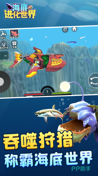 你将扮演一条鲨鱼,通过捕猎小鱼来不断进化。游戏中的海洋生物种类繁多,不仅有可供捕食的鱼类,还有许多强大的深海怪物,它们将是你进化路上的巨大挑战。每一次捕食不仅让你变得更强大,还能解锁新的技能和形态,体验从弱小到霸主的蜕变过程。你可以潜入深海,欣赏五彩斑斓的珊瑚礁,或是穿梭在沉船遗迹中,寻找隐藏的宝藏。当你感到疲惫时,不妨在海底自由游弋,感受宁静的海底风光,放松身心。