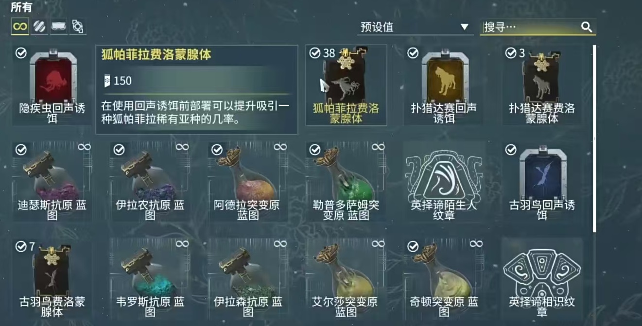 有了这样的效果,玩家所控制的主角只要负责开枪射击,无需再用其他的操作添加上异常状态,铁甲狐带有的中毒效果,就可以将异常状态全部搞定。如果大家想要获得这个宠物,需要先将火卫二平原的声望升到一级,然后带上麻醉步枪去获得我提前还要准备好回声诱饵和腺体。将诱饵放下去之后,等待对方上钩就可以了。