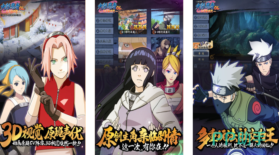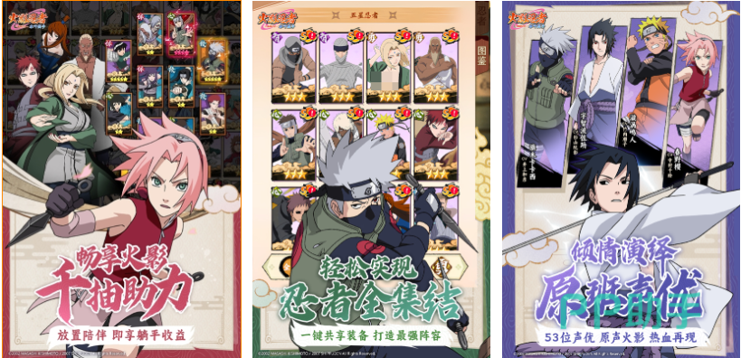 本作是款继承了火影忍者主线剧情的3D回合制卡牌作品,多样化的原创主角与全新杜撰的故事使得游戏内容更完整,原版声优的辅助更让游戏中的火影角色显得有血有肉,许多关卡模式都注重社交可支持众多火影迷合作冒险,战斗时释放的各类忍术特效霸气呈现出令人耳目一新的视觉效果。
