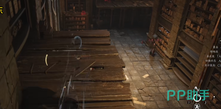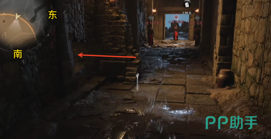 在清河的落星泉的下方,依旧是先用钥匙打开洞窟,一路向里走,乘坐梯子继续向下,下来后走到遇敌的地方可以看到左边有一个小的洞口从这里就可以绕开敌人。随后上楼梯,图中要绕开巡逻的敌人,从一旁木架上跳到房檐上然后进到书库内,清理掉里面的敌人,在书库里还有一个宝箱。