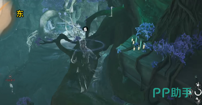 来到“雾隐之林”,跳到房顶,在房子的后面有一个宝箱。从一间房间的楼梯下到底层,解决掉沿途的敌人并获取宝箱。爬上一处藤蔓,在上面可以拿到开封东郊的宝箱。进到关底,沿着右侧的树枝走到尽头就可以看到偷师点了。
