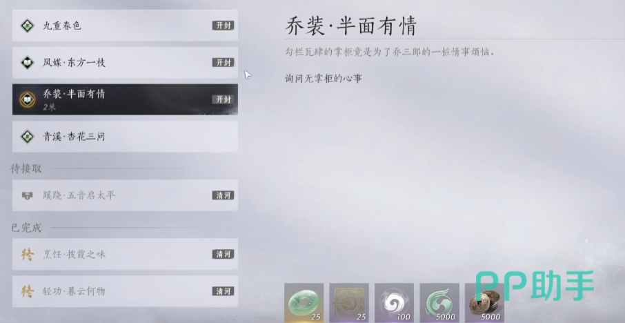 需要完成“乔装·半面有情”这个探游任务,与NPC“妆无艳”对话,将画眉等级升到2级,只要做2个乔装任务就好。随后来到开封“来苏蒙学”的传送点,过来后看向东边方向,找到NPC“路有七”对话,被拦住了,然后与反方向的神秘老者对话。随后偷听在摊位前的小糊涂,再去找艳无妆进行伪装,再回到先前的位置顺利潜入。去找“天裁”索要令牌,并收集一些宝箱,随后去找到练功场和NPC杨力互动,去找天长老领镖,在回到偷师点顺利偷师。