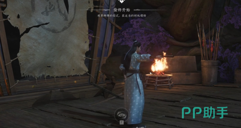 扇子的武学,先是来到竹林旧居的洞窟,在门口的机关上放上游龙钥,然后进到洞窟内,一直往下走,这里有很多民壮,可以隐身偷袭,都解决后可以顺带去找一下宝箱,其中一个黄金宝箱里就有心法“君臣药”。随后推开一旁的石门,一路走到偷师地点,隔着远远的按下对应交互键就可以偷师了。已经习得这个武学的话则没有奖励。