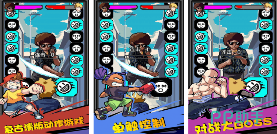 该游戏采用了帅气的硬派漫画风格,背景设定在纷乱的街区之中,里面的人物形象均被描绘得饶有趣味。其玩法归类于街机格斗范畴,但与传统格斗游戏有所不同,玩家可以同时操纵多个角色,并能随时进行切换。因此,在游玩这款游戏时,需要巧妙地组合不同的角色,这样的设计使得玩法更加多元,更加引人入胜。