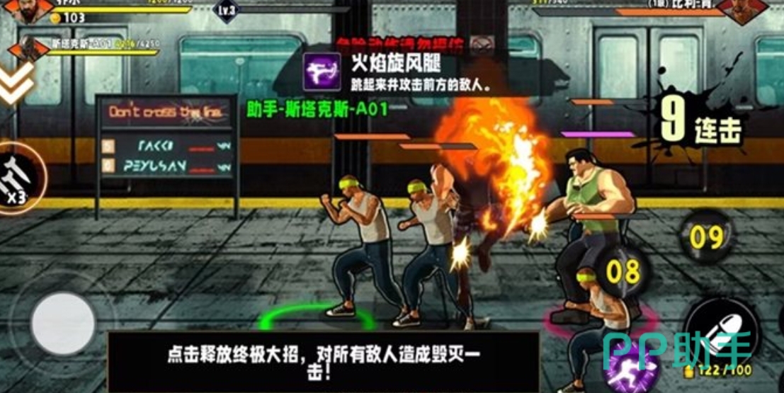 这款游戏是一款可以双人合作格斗游戏,玩家可以邀请自己的好友以联机的方式协同作战。游戏中玩家是一个赤手空拳的状态,玩家可以使用左勾拳、右勾拳、旋风腿等招式来攻击对手,打败敌人。每一层关卡中还会有各种道具可拾取用来增强角色的能力。每上升一层关卡,敌人就越强,就越考验玩家的反应能力以及格斗技术。