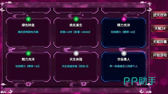 游戏提供了多样化的主题选项,,这些选择将细腻地影响玩家在游戏中的生活体验感受。在个性化设定方面,玩家拥有自主权去调整自己的外貌吸引力、智慧水平等多个方面的属性点数,并且还能解锁独特天赋。若玩家想要重新开始一段新的人生旅程,游戏提供了便捷的重开机制,包括随机分配属性的冒险模式和预设优越条件的“天选之人”模式等。在每次人生旅程结束后,玩家还能获得一份详尽的人生总结回顾。