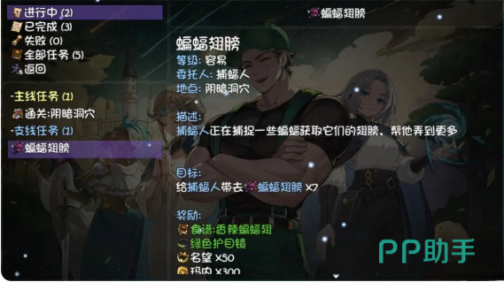 进入第二层后,任务“蝙蝠翅膀”是玩家的主要目标。与地图中的NPC对话后,击杀本层的蝙蝠以收集7个翅膀,并将其提交给NPC即可完成任务。这个任务过程相对简单,主要考验玩家的刷怪效率。第三层的任务“野兽狩猎”需要与NPC艾米对话并接受任务。任务内容是击杀本层的普通怪物,完成后需要再次与艾米对话以了解更多背景故事。任务完成后,要额外刷取10个熊皮,这些材料将在后续任务中使用,这一层任务对玩家的耐心和刷怪效率提出了一定要求。