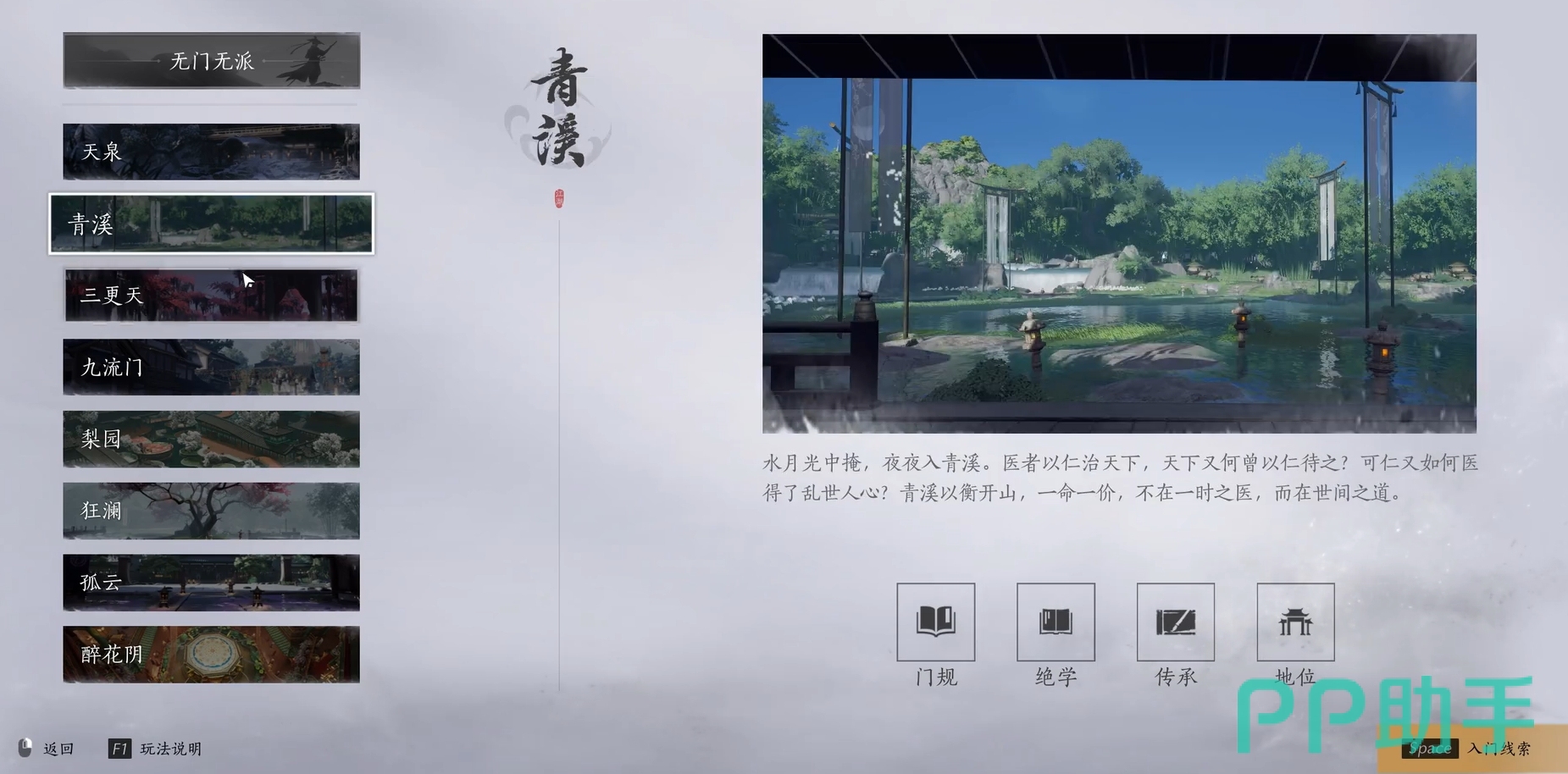作为每周都要去给他人治病且要拿到“报酬”的青溪,所拥有的武学为明川药典,是一种需要扇子才能使用出的武学,在对敌时可为自己或队友进行恢复,也能在远程攻击对手,有了它后玩家几乎就不用再去吃药来恢复了。