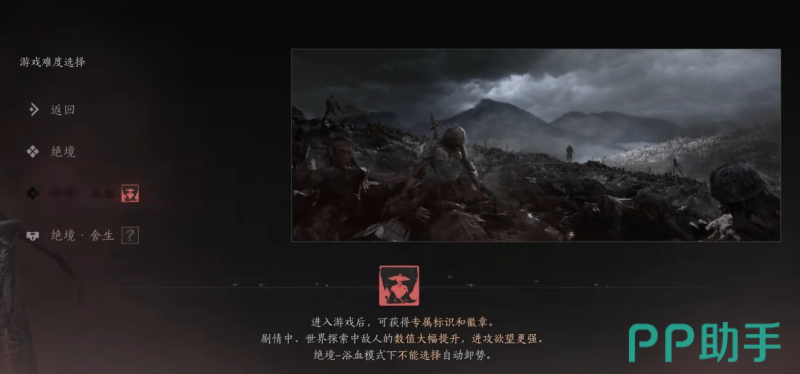选了浴血模式的玩家会拿到相应的标识和徽章作为奖励,并且在完成各类挑战后会积累自己的浴血徽章,只要点开相应自己的角色身份介绍就能看到目前的徽章收集进度。要注意浴血模式是可以随时转换成其它难度的,只不过转了后就没办法转回来了。